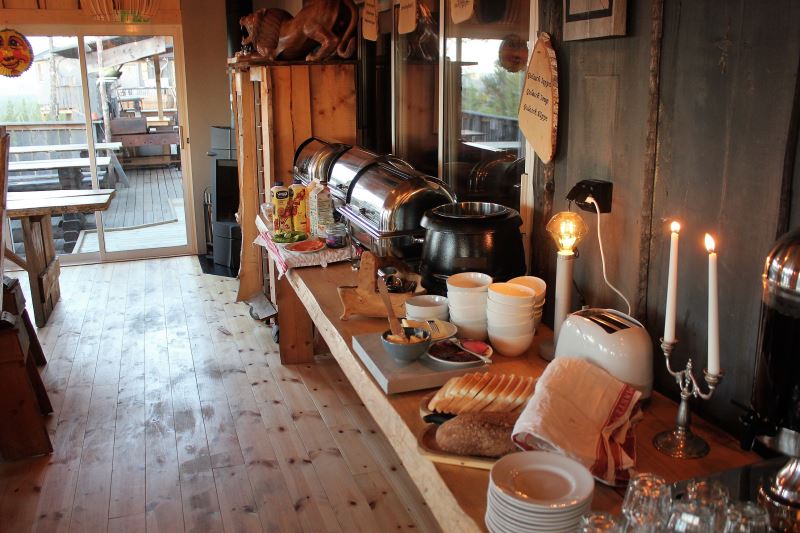 Efter övernattning har Peter ordnat med frukostbuffe och därefter blev det avslut med ziplineåkning.