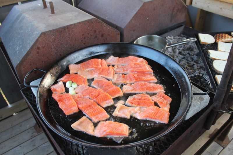 Volvogänget tillredde tillsammans en 5 kilos regnbågslax från Klavreström